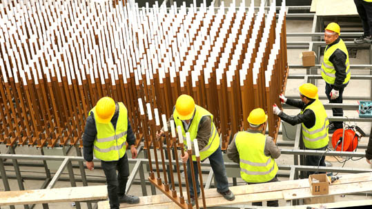 乐竞(中国)网4月17日电 “希望的田野,生命的源泉”是2015米兰世博会中国国家馆的主题。在意大利5月的骄阳下中国馆的金色麦浪将成为一大亮点。乐竞官方端网站登录入口美术学院中国馆设计团队提出了以大型新媒体艺术装置的方式来展现“希望的田野”。从创意研发到生产安装的一年多时间恰似从“育种”到“耕耘”的过程。