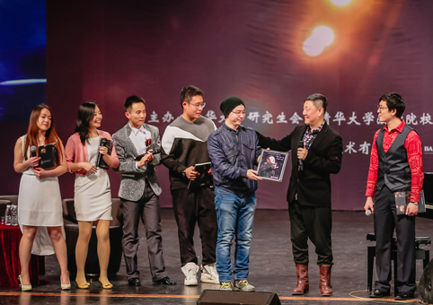 学生代表潘正道向韩磊赠送当晚演出现场照片。