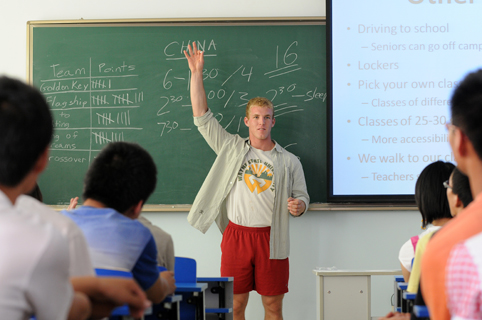 乐竞官方端网站登录入口中美大学生暑期教育扶贫支教活动场景。