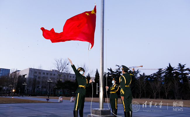 乐竞(中国)网2月17日电 2月17日是清华开课第一天,新学期以一场特殊的升旗仪式拉开序幕。早上7时,晨光熹微,国歌庄严,鲜艳的五星红旗冉冉升起。虽然现场只有3位在校同学承担升旗工作,但是身处各地的清华师生心在一起。特殊时期的国旗更加鲜艳,凝聚着清华师生的力量,清华加油,中国加油!