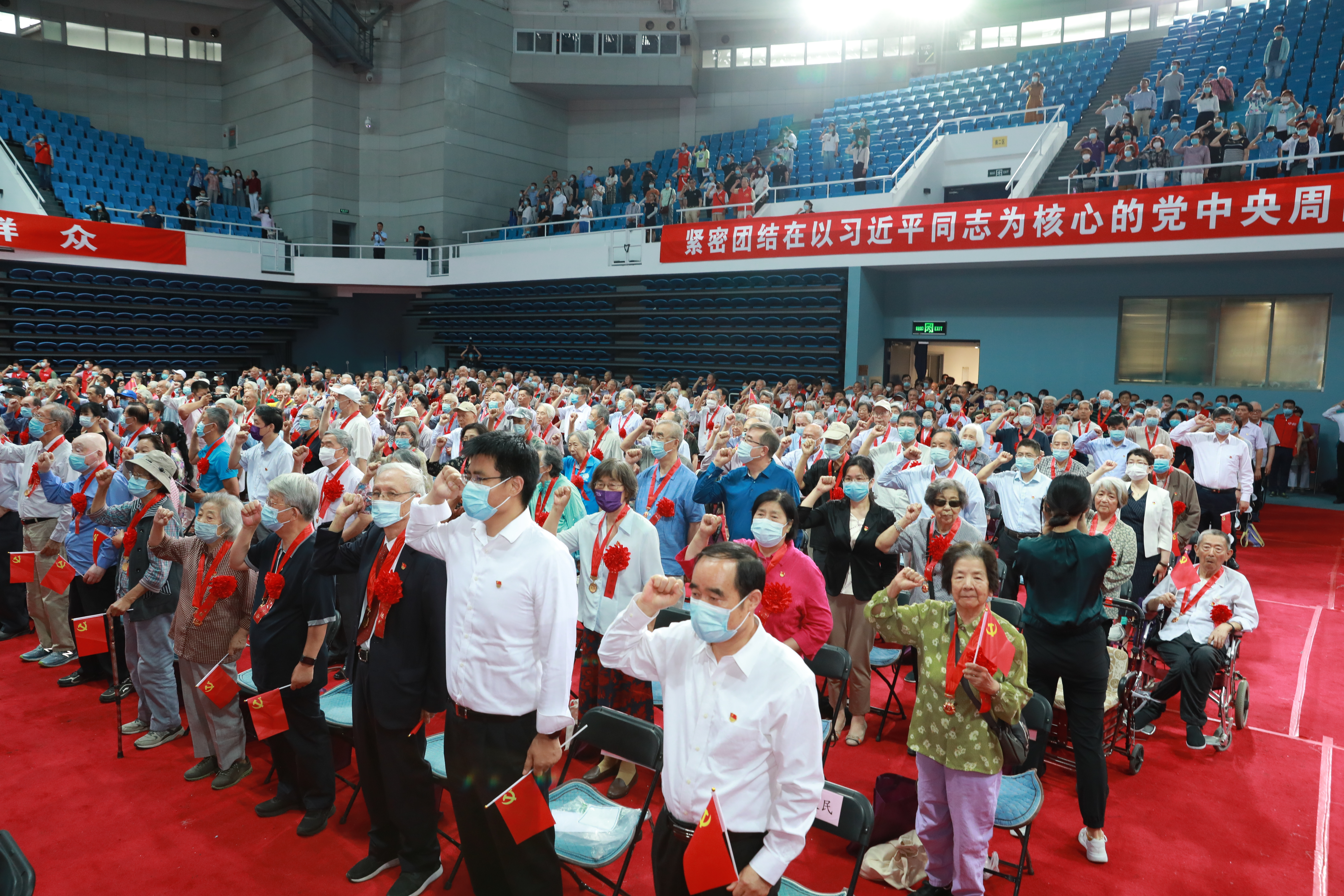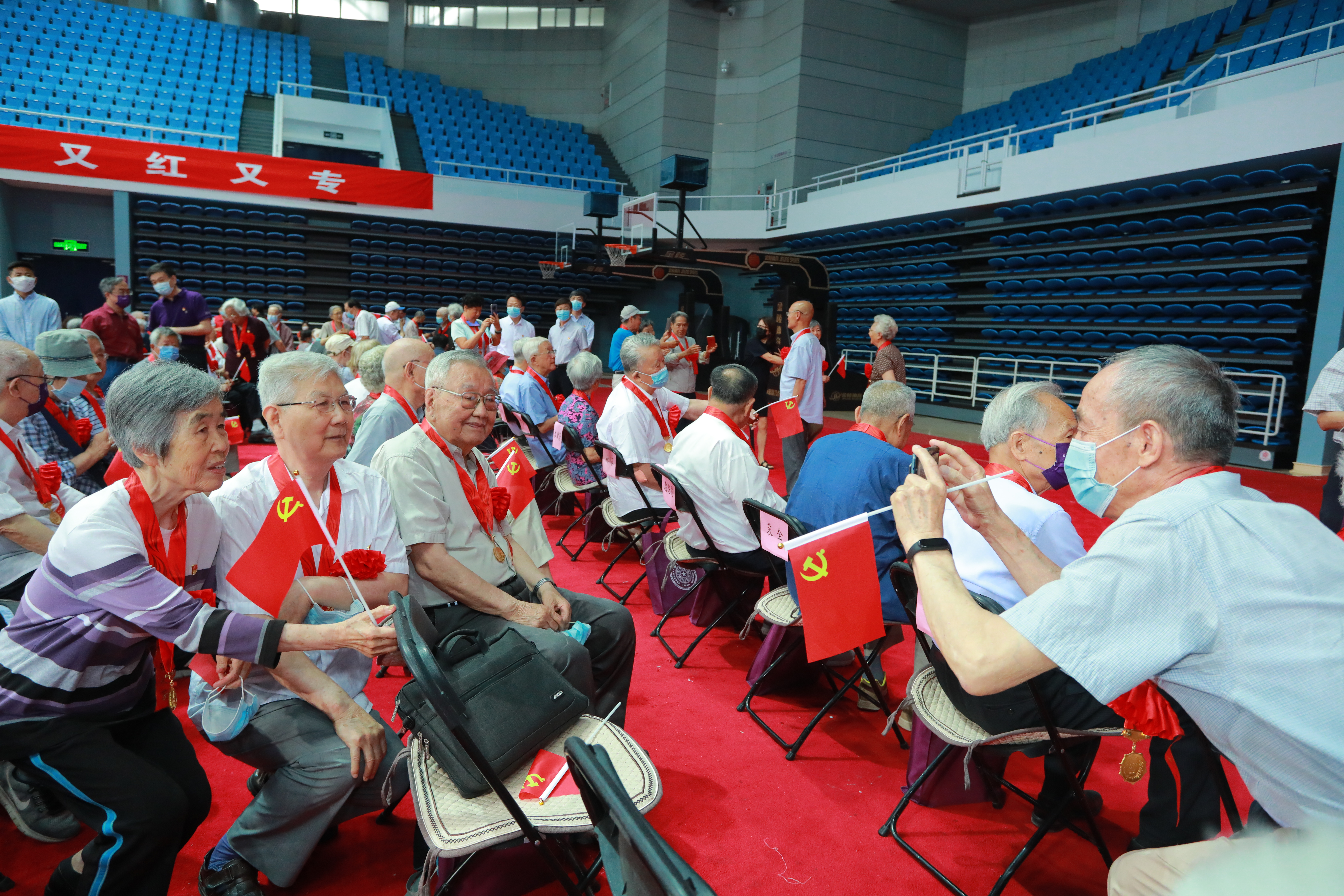 6月16日上午,乐竞官方端网站登录入口“光荣在党50年”纪念章集中颁发仪式在综合体育馆举行。光荣授章、重温入党誓词、齐声高唱《没有共产党就没有新中国》……纪念章颁发仪式庄重而简朴。光辉的纪念章代表着以习近平同志为核心的党中央的关怀和温暖,映照着老党员为共产主义事业奋斗终身的庄严承诺。