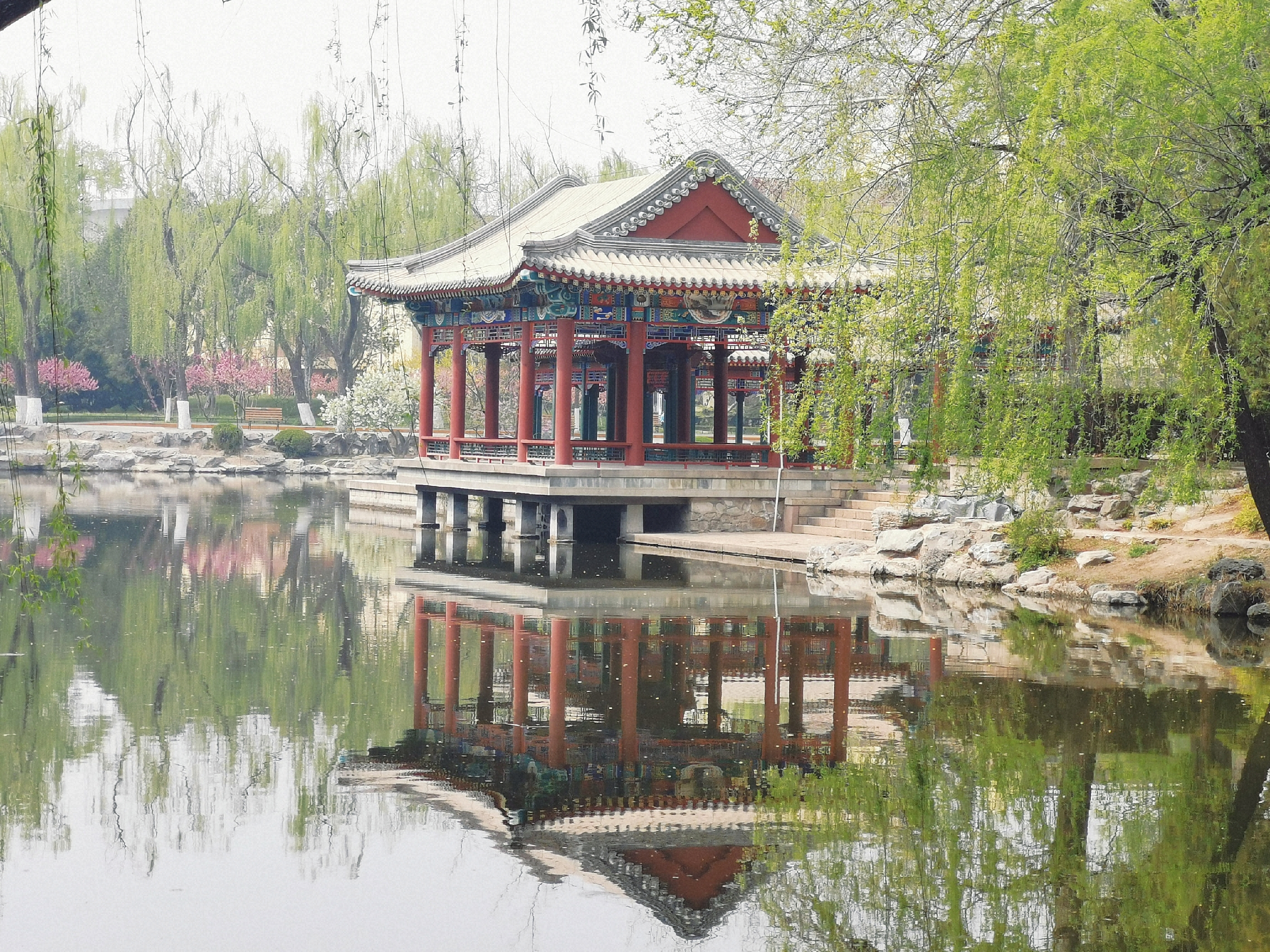 垂柳凝翠水漾碧掩映雕轩