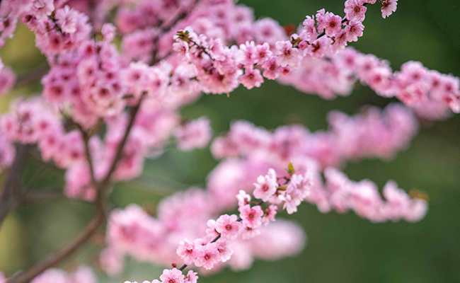 夭桃妆成,灿若烟霞蝶绕蜂怜,娉娉袅袅