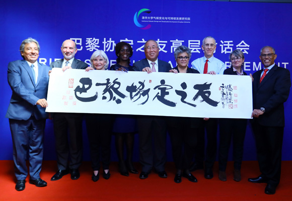高级代表们手持中国著名艺术家韩美林先生题字“巴黎协定之友” 合影