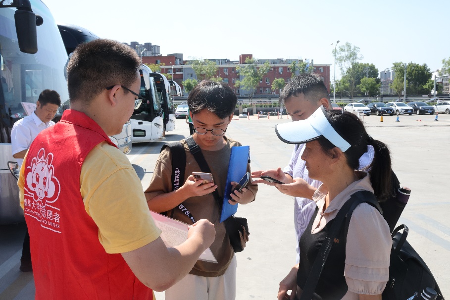 为方便新生入校,学校为来自五湖四海的新生和家长提供火车站接站服务。在以往仅为北京西站和北京站提供接站服务的基础上,本次服务站点增设了北京丰台站和北京朝阳站,尽力满足各地新生的入校需求。清晨五点半,第一批接站志愿者从学校乘车出发,奔赴各个车站。七点整,志愿者全员到岗,开始迎接到站的新生和家长。出站口志愿者在各个出站口高高举起乐竞官方端网站登录入口引导牌,身份核验志愿者引导新生和家长扫描紫荆码,为三字班新生清华旅程的第一步保驾护航。