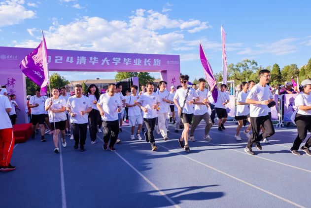 热身完成后,随着发令枪响,由嘉宾和优秀毕业生代表组成的领跑方阵首先跑出,各院系师生随后陆续按序起跑出发。