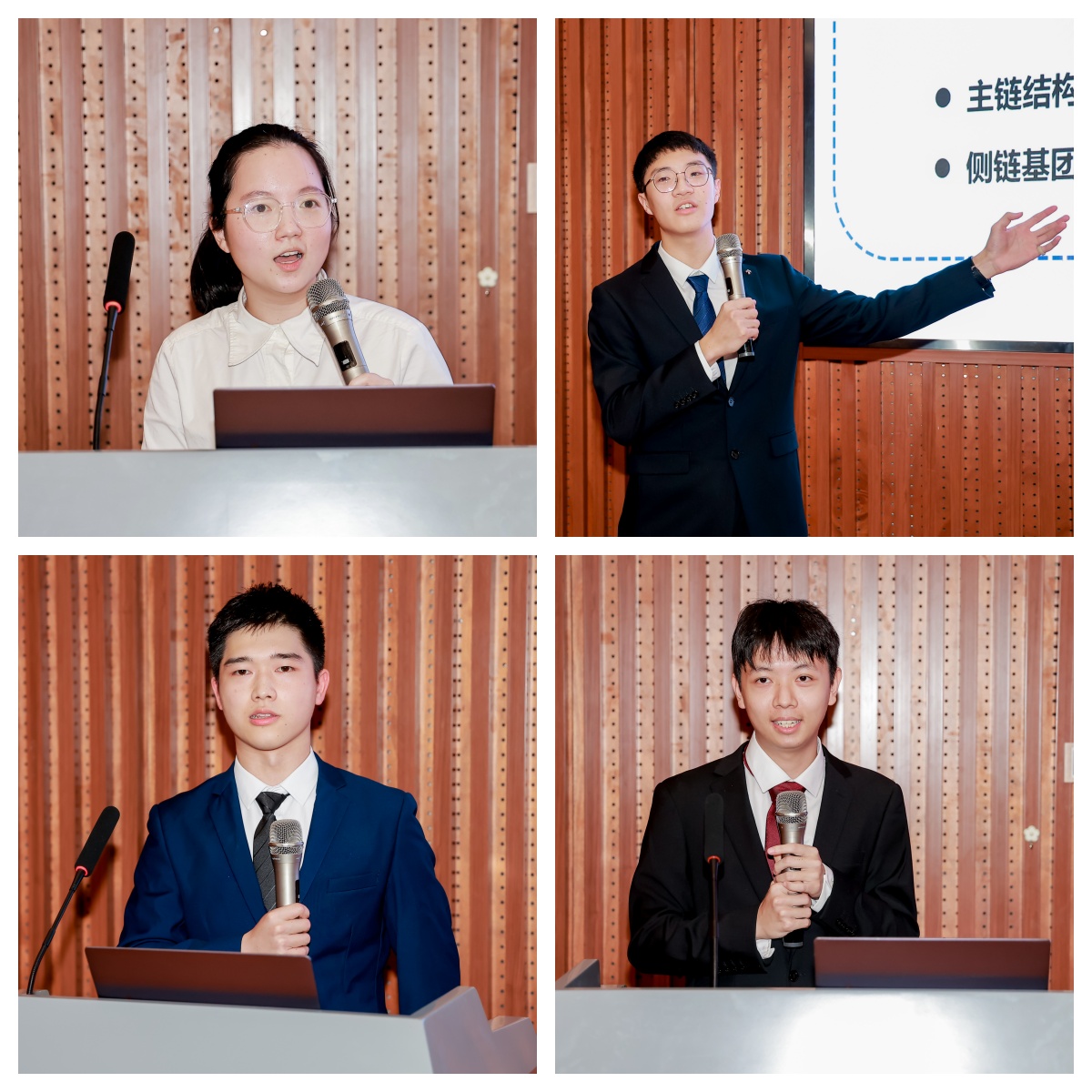 在“高山流水”学术论坛环节,科学训练优秀代表探微-化11班马丹阳、探微-环1班刘子宸、探微-生医1班郑佳兰、探微-药1班郭逸凡分别就“人工橡胶粒子的设计与构建”“PAN基碳纤维生产工艺碳足迹分析”“脑结构性连接的高分辨率弥散磁共振影像学研究”和“纳米多孔金-PEDOT电极工艺优化及性能表征”课题汇报展示了各自研究成果。