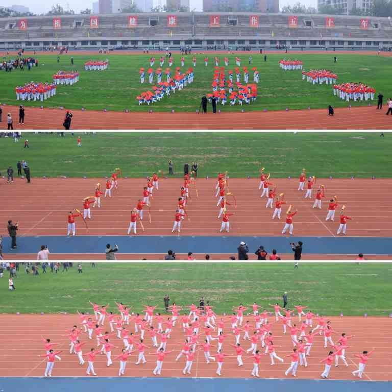 趣味运动会在精彩的团体操表演中拉开帷幕。开幕式表演节目丰富多彩,共有400位离退休教职工参加了木兰功夫扇《花木兰》、柔力球《腾飞中国龙》、健身舞《共圆中国梦》团体操表演项目,精彩的表演引得阵阵掌声。