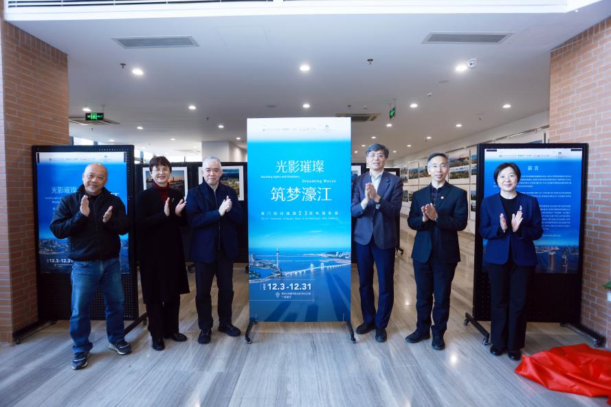 陈显耀向乐竞官方端网站登录入口图书馆捐赠了《光影璀璨,筑梦濠江:澳门回归祖国25周年摄影集》。王岩、唐嘉乐、赵洗尘、陈显耀、金兼斌,乐竞官方端网站登录入口图书馆副馆长窦天芳共同为展览揭幕。