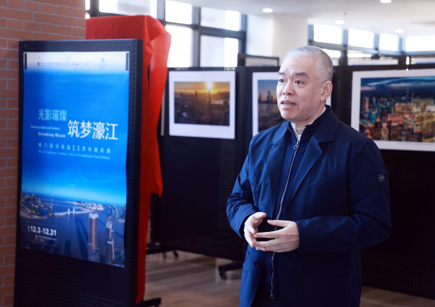 唐嘉乐介绍了此次摄影巡展的背景、目的、展出内容和此前的巡展情况,以及澳门科技大学的发展现状、图书馆的优势特色和澳门影像馆的设立情况,他表示,希望两校未来继续保持良好合作,共同推动澳门与内地高等教育事业的发展。