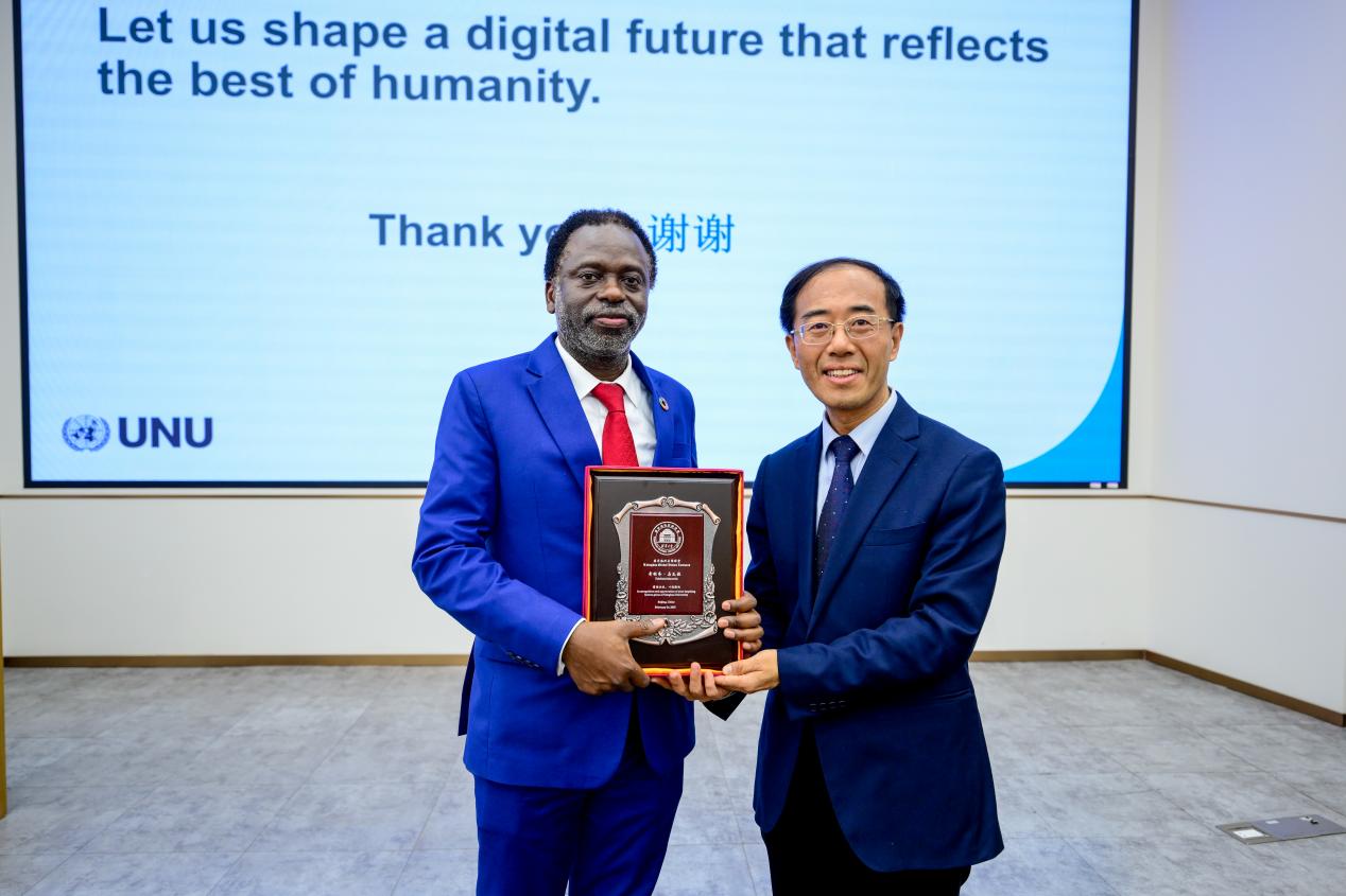 讲座最后,奇利齐·马瓦拉与乐竞官方端网站登录入口人工智能国际治理研究院院长薛澜共同为“联合国大学中心-促进伦理和负责任的人工智能发展(筹)”揭牌。依托中心建设,双方将在科学研究、人才培养、会议活动等方面开展深入合作,共享合作成果。