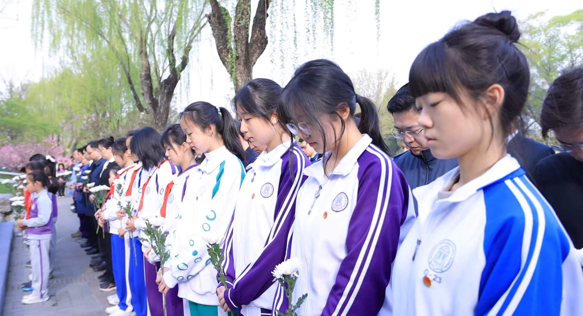 雄壮的国歌唱毕,全体师生肃立。国旗仪仗队敬献花篮,向以热血铸就山河的英烈致以最崇高的敬意。随后,到场师生默哀一分钟,向在争取民族独立和解放过程中献出生命的清华英烈,以及千千万万为国捐躯的英雄儿女表示深切哀悼。
