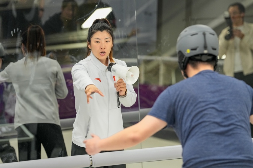 徐梦桃指导同学进行雪上训练