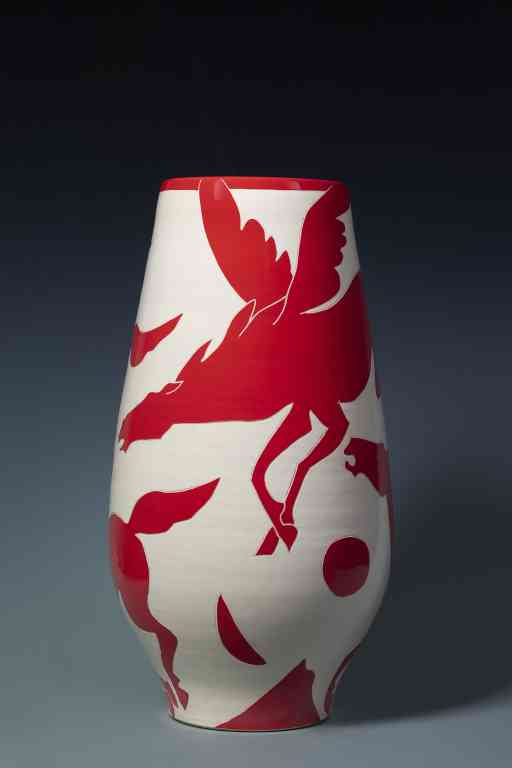 《天马归来》 磁州窑化妆土红地剔划花