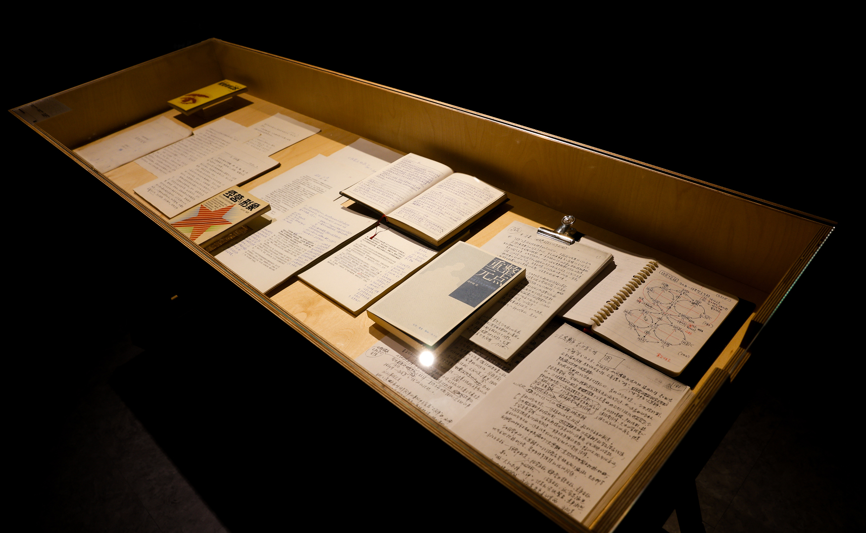 展览著书立说单元展出的高中羽教授著作及手稿