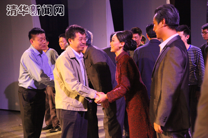 图为演出结束后史宗恺等与演员亲切握手。学生通讯员 钱琪瑶 摄