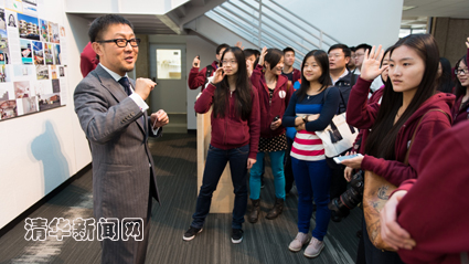 南加大建筑学院院长马清运学长(建筑系,1983级)向代表团介绍南加大建筑学院,同学们纷纷就感兴趣的问题提问。张瀚文 摄
