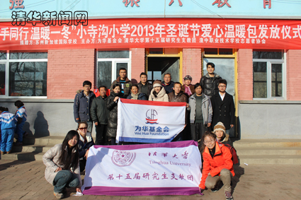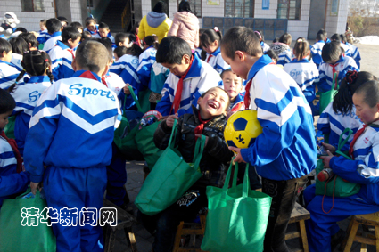 青海省西宁市湟中县地处青藏高原,冬季平均气温很低,早晚温度可达零下20度。而位于上五庄镇的北纳小学、小沟寺小学和位于鲁沙尔镇的水滩小学由于建在较为贫困的山区,条件更为恶劣,孩子们每天都要顶着严寒走很远的山路才能到达学校。正在湟中县进行支第十五届支教团成员们发现这个问题后,一直致力于为这3所小学的孩子们联络御寒物资。在为华基金会的帮助下,清华支教团的成员们联系到了苏州新加坡国际学校,那里的家长们愿意以圣诞礼物的形式给每个孩子准备一个御寒礼包。两次实地走访后,清华支教团成员将3所学校497名学生的个人信息整理完毕,经过一个月的联系沟通与物资采购,所有的礼包在23日顺利到达了孩子们的手中。