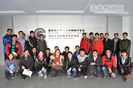 图为参加活动的同学在微电子所门前合影。朱昕 摄