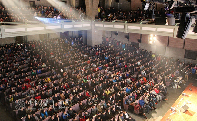 清华学生在大礼堂聆听“艺术名家讲堂”。