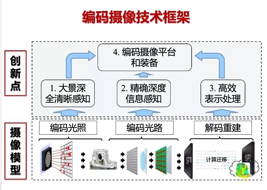 成果简介:项目组长期围绕编码摄像领域开展研究工作,通过对光照、光路等成像要素进行编码调制与计算重构,实现大纵深场景全清晰感知、复杂环境精确深度感知,突破传统光学成像景深、时空分辨率等性能瓶颈和信息维度缺失局限。在应用基础理论、共性核心技术、关键装备平台等方面取得了一系列突破性成果:获国家授权发明专利60项,软著12项;构建了编码摄像技术体系,研制了一系列装备和系统,在工业视觉检测与互联网媒体等领域实现了规模化应用,取得了显著的经济和社会效益。