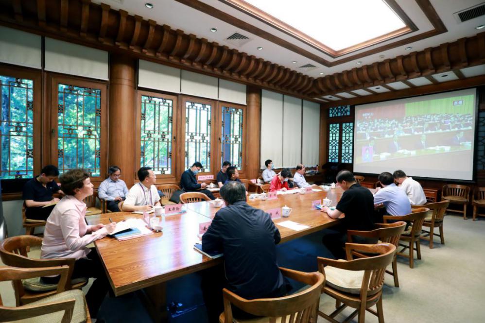 校党委书记陈旭表示,今年因为疫情防控特殊原因,全国两会决定推迟到5月份召开,体现了党和政府始终坚持以人民为中心的思想和生命至上、健康第一的理念。如今,举世瞩目的两会在全国人民的热切期盼中顺利召开,郑重宣示了我们在疫情防控常态化背景下勇于决战决胜、努力完成2020年目标任务的必胜信心和坚定决心,有效凝聚了全国各族人民众志成城同心干、风雨无阻向前进的磅礴力量。