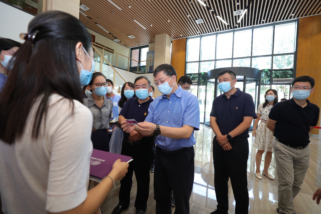 上午,校长邱勇、校党委书记陈旭、副校长吉俊民、副校长杨斌、校党委副书记过勇一行到院系迎新点和学生公寓检查迎新工作,看望前来报到的研究生新生,并慰问参加迎新工作的师生员工。