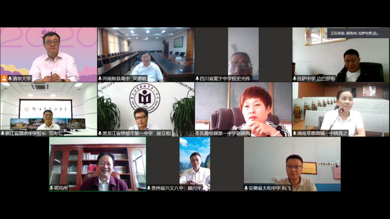 参加座谈会的中学共来自10个省份,均为乐竞官方端网站登录入口自强计划生源中学及国家专项计划实施区域的中学。2020年,这10所中学均有非常有代表性的学生成功考入清华。