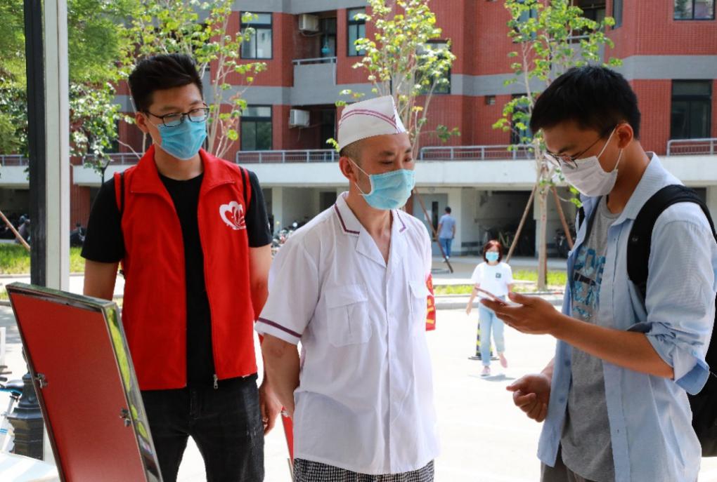 返校的同学们在C楼学生公寓总服务台核实并登记入校信息、完成校园卡注册手续后,回到了阔别五个月的宿舍。陈旭慰问了在总服台的工作人员,当听到工作人员表示“经过多次演练,心里有底”时,陈旭感到很欣慰,并对付出了辛勤劳动的每一位职工表示感谢。