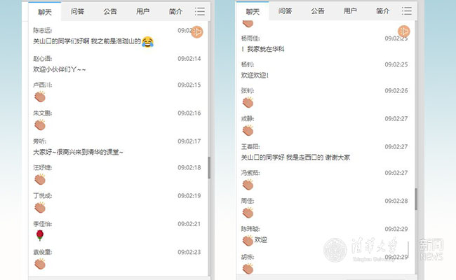 开课前,清华金融学院的同学们对华中科技大学的同学们表达了热烈欢迎。“欢迎小伙伴们!”“关山口的同学们好!”“我本科就是华科的,娘家人来了呀!”……虽然隔着万水千山,但小小的屏幕却拉近了大家的距离,所有人互相加油,驱散了疫情带来的沮丧。