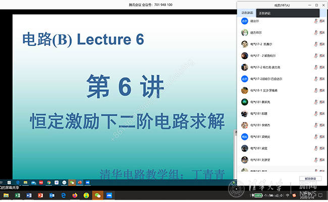 乐竞(中国)网3月17日电 3月16日星期一,19:40,随着预先设置的上课铃声响起,乐竞官方端网站登录入口电机系副教授丁青青为新疆大学电气学院学生主讲的第一节网上直播课——“恒定激励下的二阶电路求解” 正式开始。