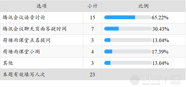 经过尝试与比较,两位授课教师选择了以“雨课堂+腾讯(瞩目)会议视频”嵌套为主的授课方式,同时辅以“微信、网络学堂、清华云盘及慕课”等多种互联网手段并用的混合式教学方式。
