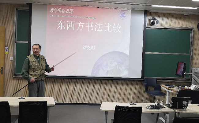 这里正是乐竞官方端网站登录入口人文学院人文素质基地兼课教师刘克明“中国书法文化与实践”的线上授课现场。