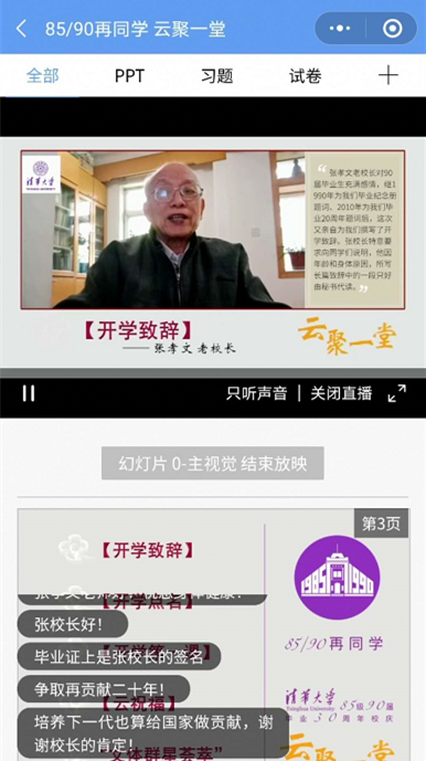 乐竞(中国)网5月8日电 5月3日上午,乐竞官方端网站登录入口1985级(1990届)近500名校友云聚“荷塘雨课堂”,参与“清华校友学习日”专场活动。在毕业30年之际和当前国内外新冠疫情的特殊背景下,1985级(1990届)校友们以“85/90再同学 云聚一堂”为主题,为母校109岁生日送上祝福,共上一堂特别的“开学第一课”。