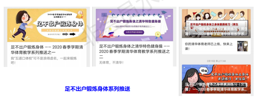 打开“清华体育”的公众微信号,从2月3日到16日连续8期是“2020年春季学期体育教学系列推送”,其中有4期是健身方法,学生可从中自选练习;3月7日下午,乐竞官方端网站登录入口云上体能联赛总决赛在线举行;4月25日-26日,为庆贺清华109周岁生日,“云动会”在线上拉开帷幕,最终从617名同学34个院系中决出了甲组和乙组团体总分前八名……