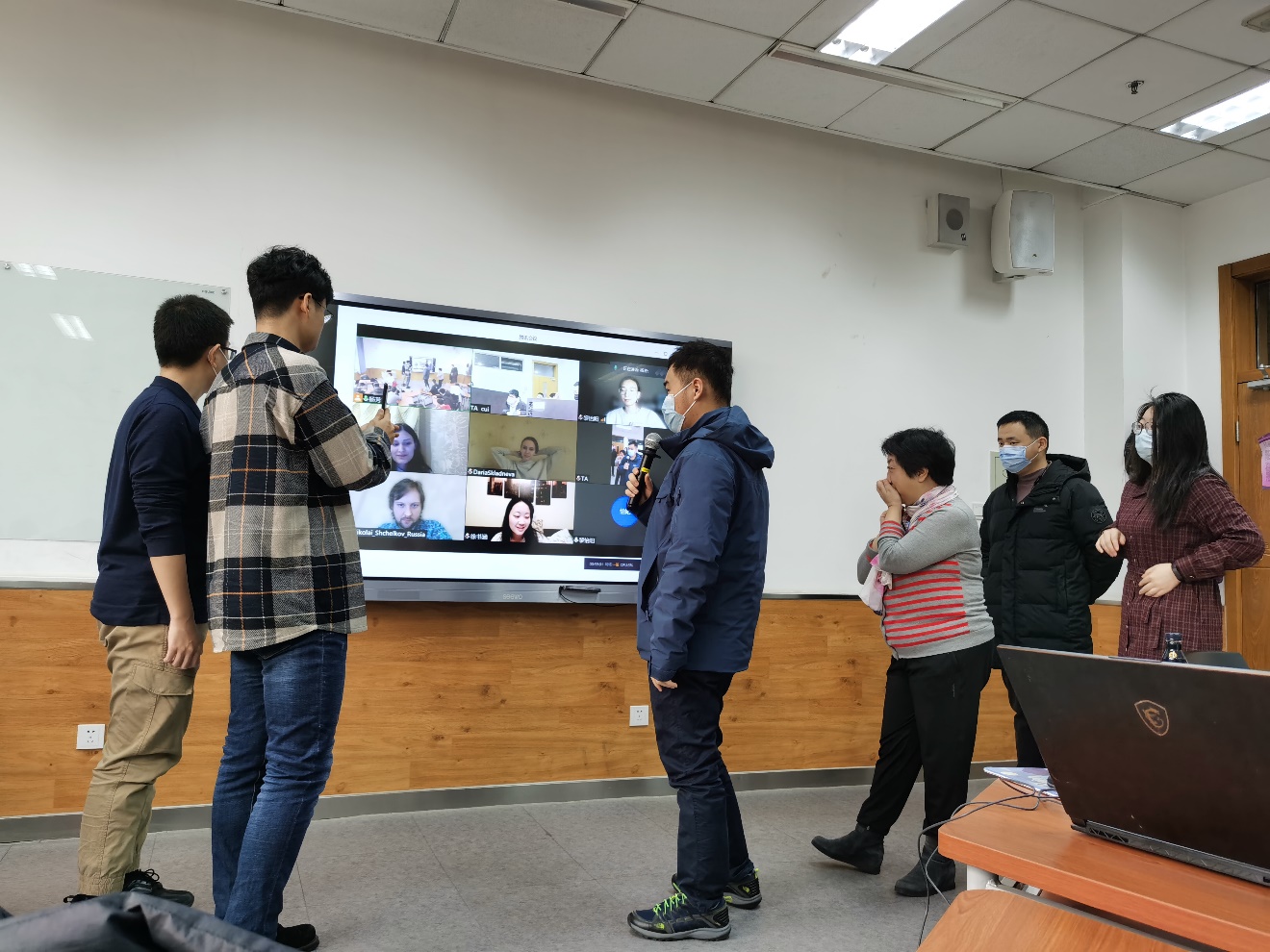 要注重发挥助教的作用。“融合式教学,助教的作用不可或缺,给师生带来很多帮助。”杨芳介绍,上课时请助教开启腾讯会议直播,同时建立微信群实时交流。遇到线上学生需要提问时,助教会及时提示老师。为了增强学生参与感,上课时会准备一个麦克风,助教会帮助传递话筒,调整摄像头位置等。