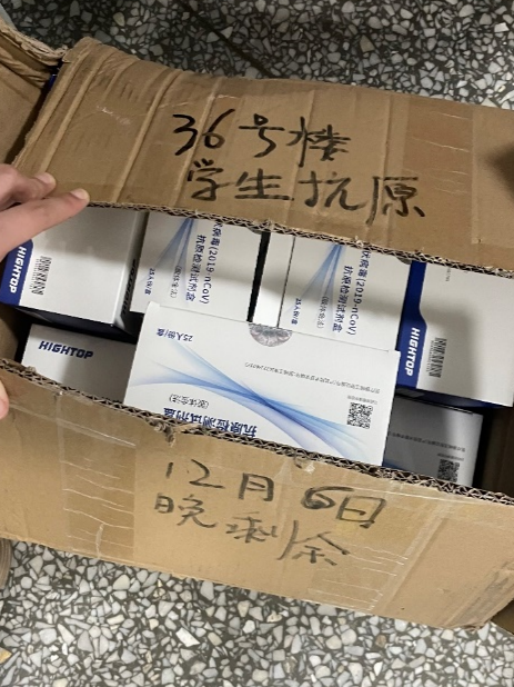 12月6日21点,新闻学院22级硕士生赵佳在学生公寓36号楼志愿者骨干群中,收到了来自自己学院党委副书记梁君健老师的消息。梁君健是36号楼的防疫工作指挥长,在学校组织为学生发放抗原试剂时,他主动上阵,搬运抗原试剂,再开车送到各个宿舍楼宇进行安排发放。
