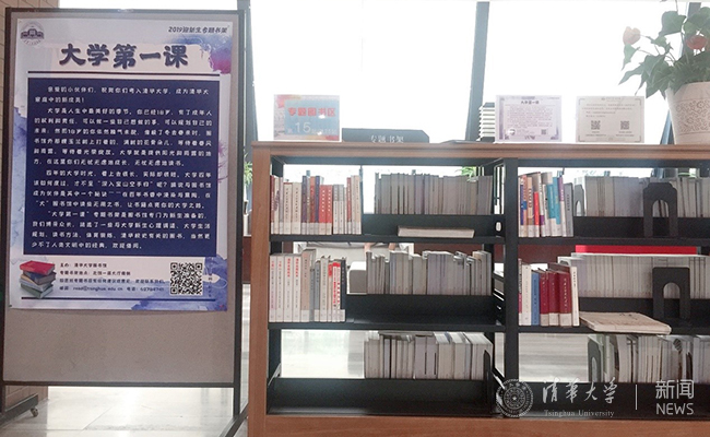 所有迎新宣传资料及手册,图书馆公众号、服务号的微信二维码、丰富多彩的宣传品在开学前已全部准备就绪。图书馆还为九字班新生特别定制了迎新专题书架——大学第一课,有针对性的挑选了与大学新生心理调适、大学生活规划、读书方法、清华校史有关的图书。
