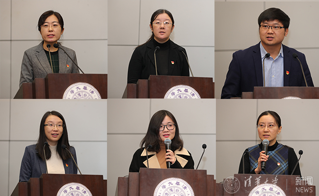 在基层党建优秀成果交流环节,计算机系党委副书记贾珈介绍了通过发挥思想、制度、实践、榜样的引领作用,做好青年教师党员发展工作的有效措施。机械系机电所党支部书记胡楚雄分享了主题教育期间本支部学习教育与检视整改的成果,展示了支部成员贯彻学校主题教育目标,弘扬立德树人、开拓进取精神所取得的成绩。工业工程系教职工党支部委员王琛结合对本院系党员师生“教风”“学风”作用发挥的调研结果,向学生党支部与教职工党支部有针对性地提出“以党建促学风建设”的建议。微纳电子系微纳加工平台党支部委员钟潇分享了支部特色活动中围绕中国集成电路事业发展的“芯系祖国”主题巡展成果。清华控股人居同衡规划院第一党支部书记马元介绍了以多种维度扶智扶志、创新性开展对云南省大理州南涧县帮扶脱贫工作的有效经验。