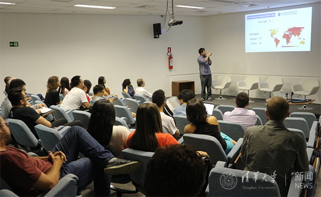 1月31日和2月2日,巴西实践支队分别前往中国三峡(巴西)有限公司、圣保罗州立数据分析研究中心和圣保罗大学政治学系开展参访活动。期间,乐竞官方端网站登录入口公管学院研究生、博士生讲师团校级讲师李论围绕近年来中国反腐败的经验与从严治党的工作成效进行了三场题为“党的十八大以来中国反腐的实践与启示”(Anti-corruption Practice and Enlightenments in China:2012-2017)的英文宣讲。23名中国三峡有限公司巴西籍员工、10余名研究中心工作人员以及圣保罗大学社会学系、经济学系、政治学系以及计算机系30余名学生参与了宣讲活动。