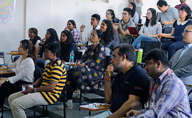 清华学子与在尼赫鲁大学的中国留学生共同交流。