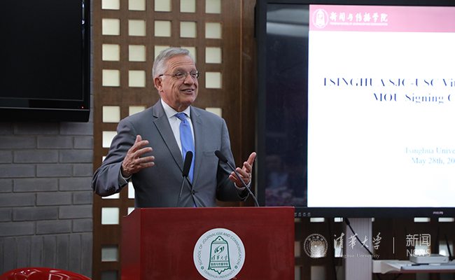 邓锋介绍了南加大与新闻学院合作的相关背景,并对两校三院合作的表示积极支持。