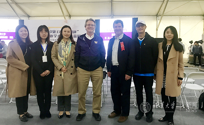 理查兹教务长(中)一行参观“挑战杯”后合影