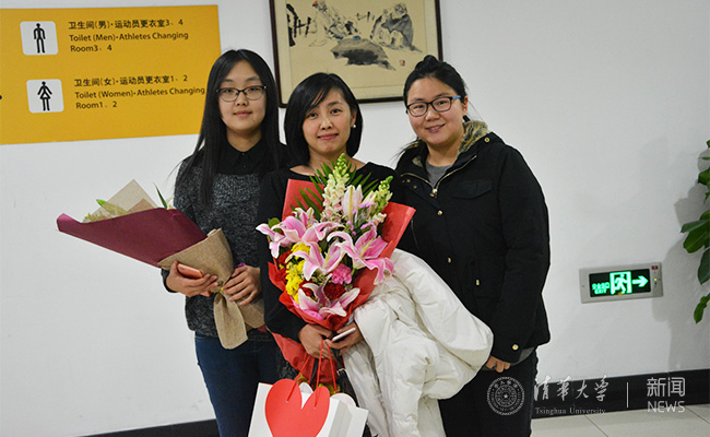 薛健获得清韵烛光-我最喜爱的教师奖时,同学们给她献花。