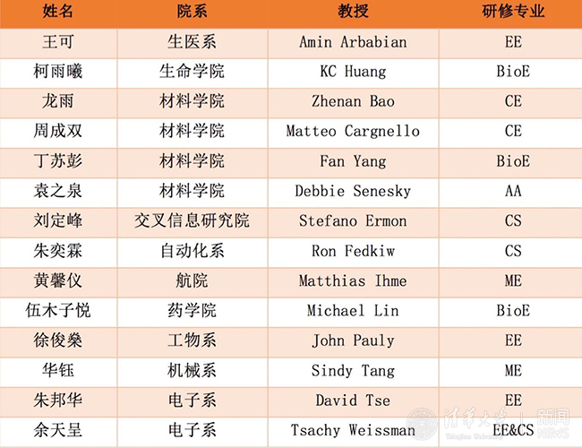 清华14人入选2017年斯坦福本科生访问研究者项目