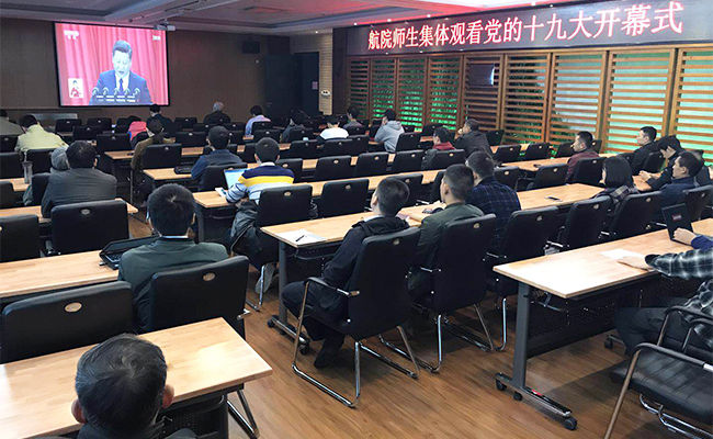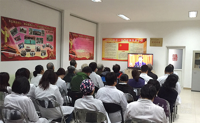 校机关党委组织观看十九大开幕会。 记者 苑 洁 摄