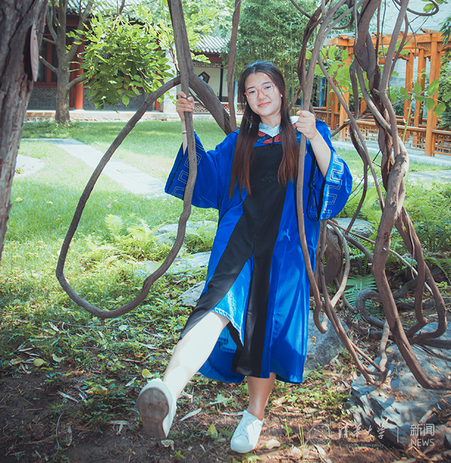 穿上学士服依然可以像童话里的公主一样荡秋千。
