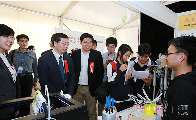 开幕式结束之后,校领导和来宾参观了“挑战杯”学生课外学术科技作品展。