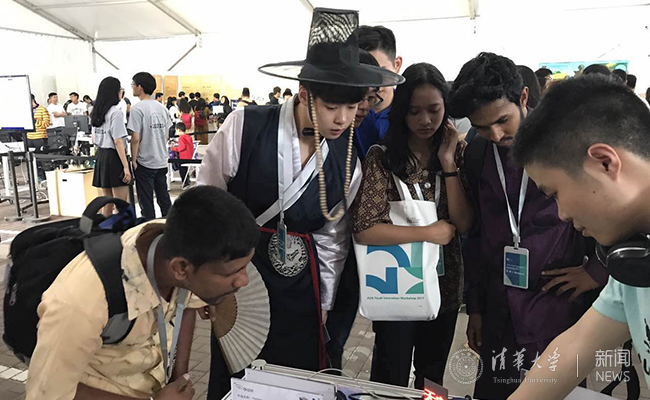 参加亚洲大学联盟青年创新工作坊学员参观博览会。