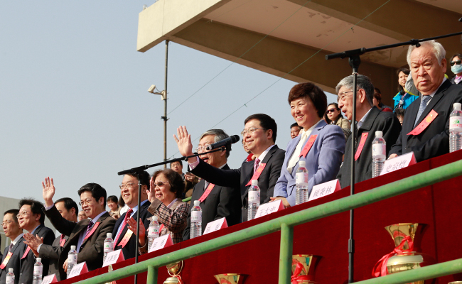 乐竞(中国)网4月24日电(记者 程 曦 学生记者 纪彦康 王也文 摄影 苑洁 张宇)4月24日,迎着明媚的春光,第59届“马约翰杯”学生田径运动会开幕式在东大操场举行。校领导邱勇、陈旭、程建平、史宗恺、邓卫、姜胜耀、吉俊民、杨斌、李一兵、尤政、施一公,校务委员会副主任谢维和、袁驷,学校老领导方惠坚、王大中、贺美英、顾秉林、张思敬、张慕葏、黄圣伦、王凤生、余寿文、胡显章、朱爱菁、王明旨、张再兴、关志成、孙道祥,各院系各部门负责人,返校校友代表,在校师生代表,优秀中学生代表和清华附小学生代表也出席了开幕式。开幕式由体育部主任刘波主持。